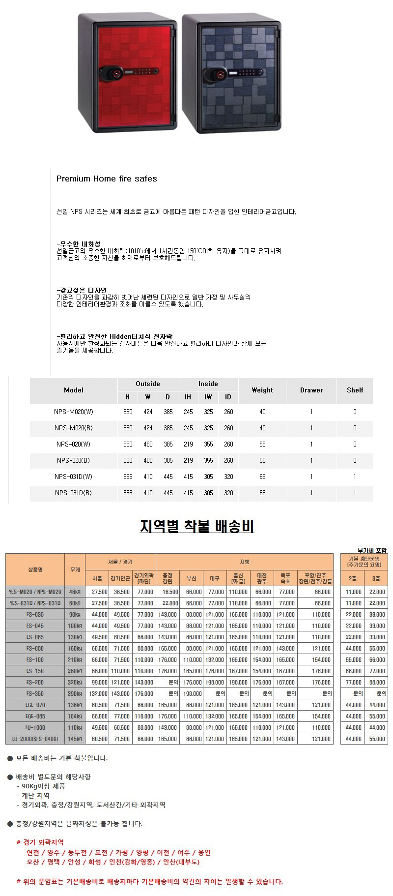 [선일금고]NPS-031D 63Kg 2컬러 (서랍1개,선반1개/외부410x445x536mm)