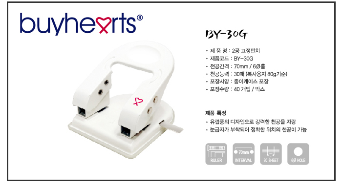 [바이하츠] 2공펀치 BY-30G(30매천공)