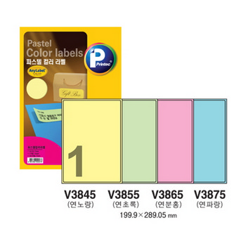 [프린텍] 파스텔칼라라벨 V3845-20(20매/1칸/연노랑)