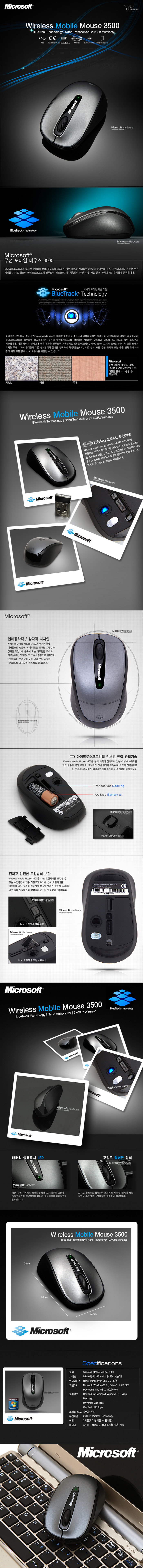 [MS] 마우스 무선 블루트랙3500 슬레이트 (블랙/지나핑크/화이트)